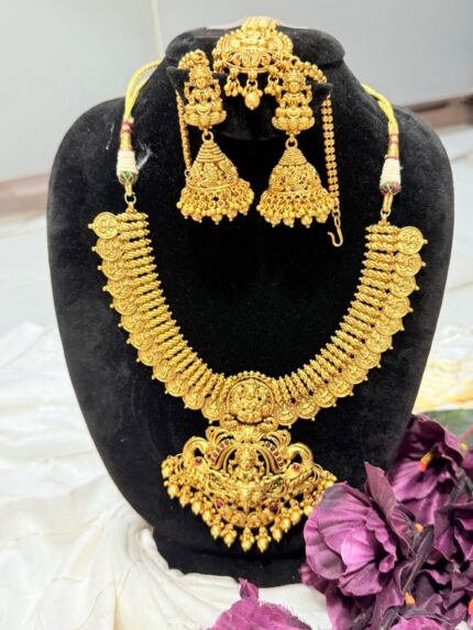 ✨ Elegant Gold Plated Necklace with Jhumka Earrings– By Eliyana Dream Store ✨ Add a touch of grace to your